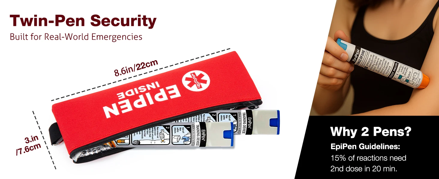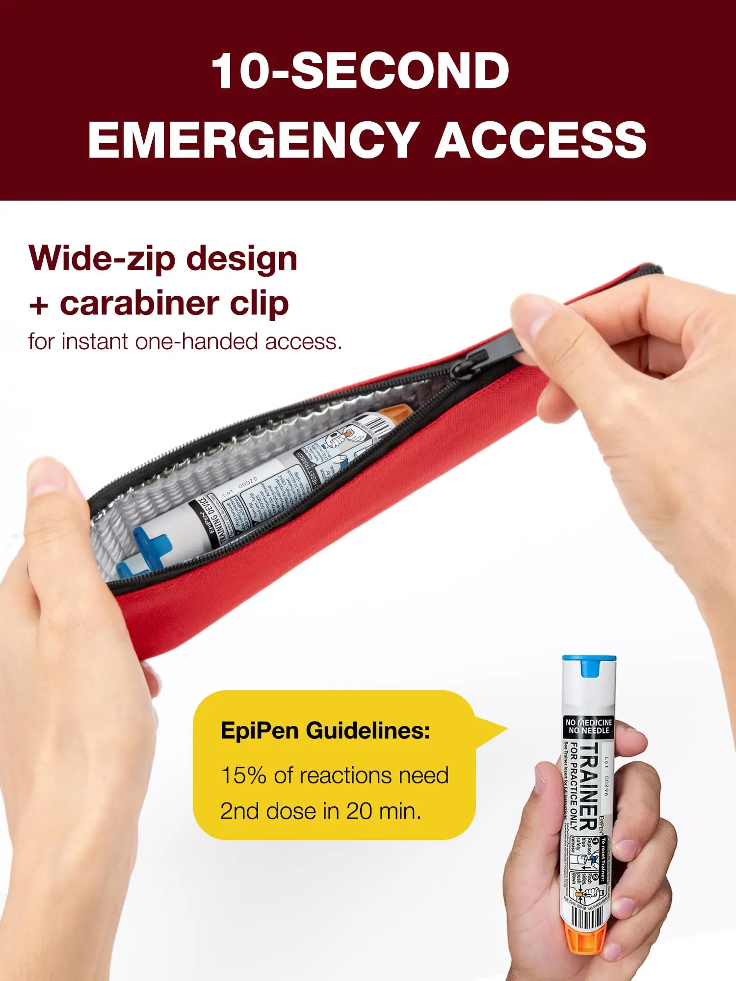 EpiPen Carry Bag Holds 2 Insulated Waterproof Travel Bag with Carabiner for Sports Outdoor Emergencies